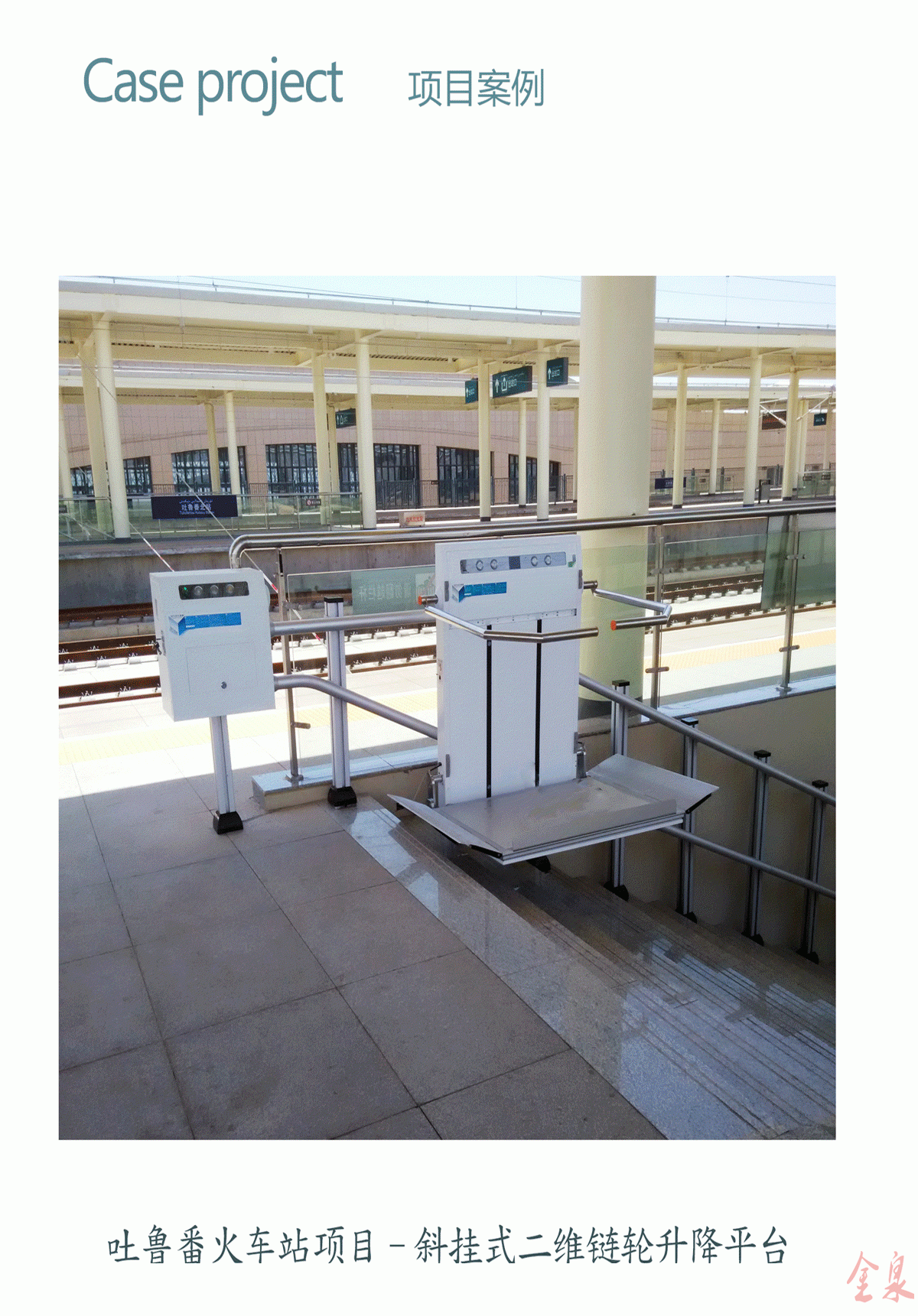 傾斜式無障礙升降平臺可安裝在室內和室外,可安裝在大型公共場所,如療養院,學校,餐廳,酒店,機場,地鐵,商場等。我們的斜掛式無障礙升降機平臺使用根據樓梯形狀設計的高精度導軌,可應用于直線,弧形,螺旋形樓梯。
